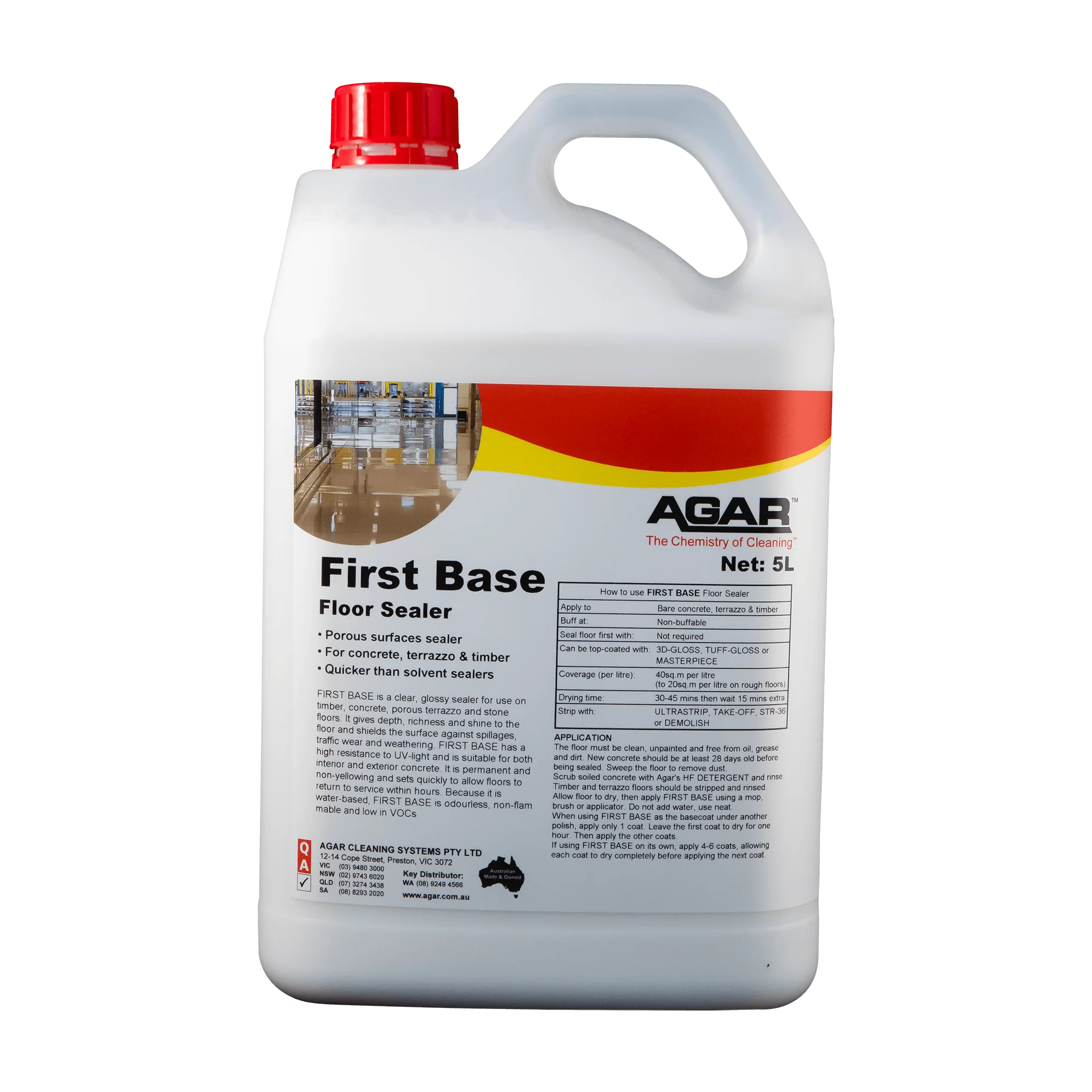 FIRST BASE is a water-based, semi-permanent base coat sealer perfect for outdoor use. Ideal for sealing concrete, porous terrazzo, and worn vinyl, this product provides long-lasting protection against the elements. Keep your surfaces looking new with FIRST BASE.